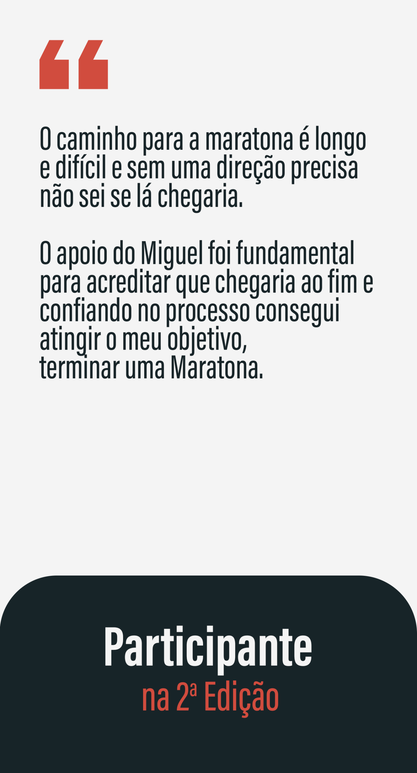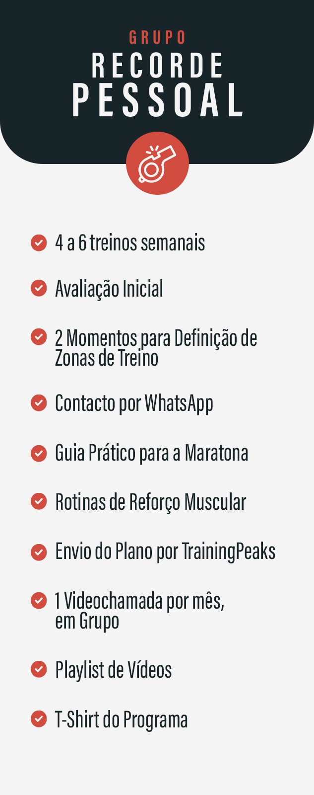 Os seus participantes terão ainda direito a um guia prático para a maratona, uma videochamada de grupo mensal, um conjunto de vídeos educativos, plano de reforço muscular e contacto através da comunidade de WhatsApp.